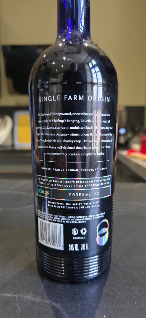 Cette édition a été distillée à partir de l’orge cultivée et récoltée en 2016 dans le comté de Laois par l’énigmatique Seamus Duggan, élu fermier de l’année en 2019 par les équipes de Waterford.